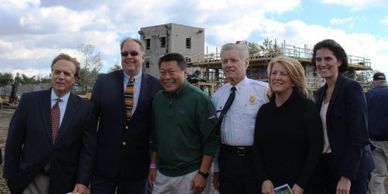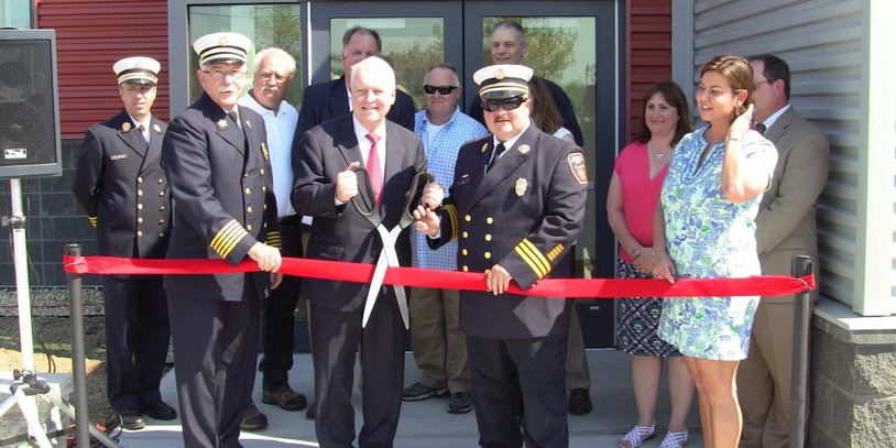 Fairfield Fire Chief Denis McCarthy, First Selectman Michael Tetreau and Assistant Chief Scott Bisson cut the ribbon to the new facility.